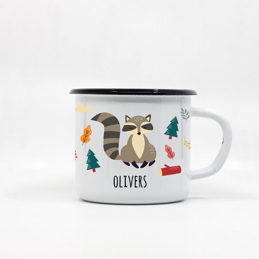Kids Racoon enamel mug with your name 250ml/8.45oz
