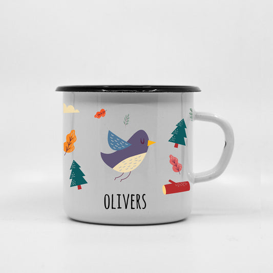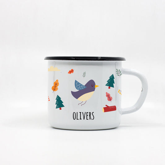 Kids Bird enamel mug with your name 250ml/8.45oz