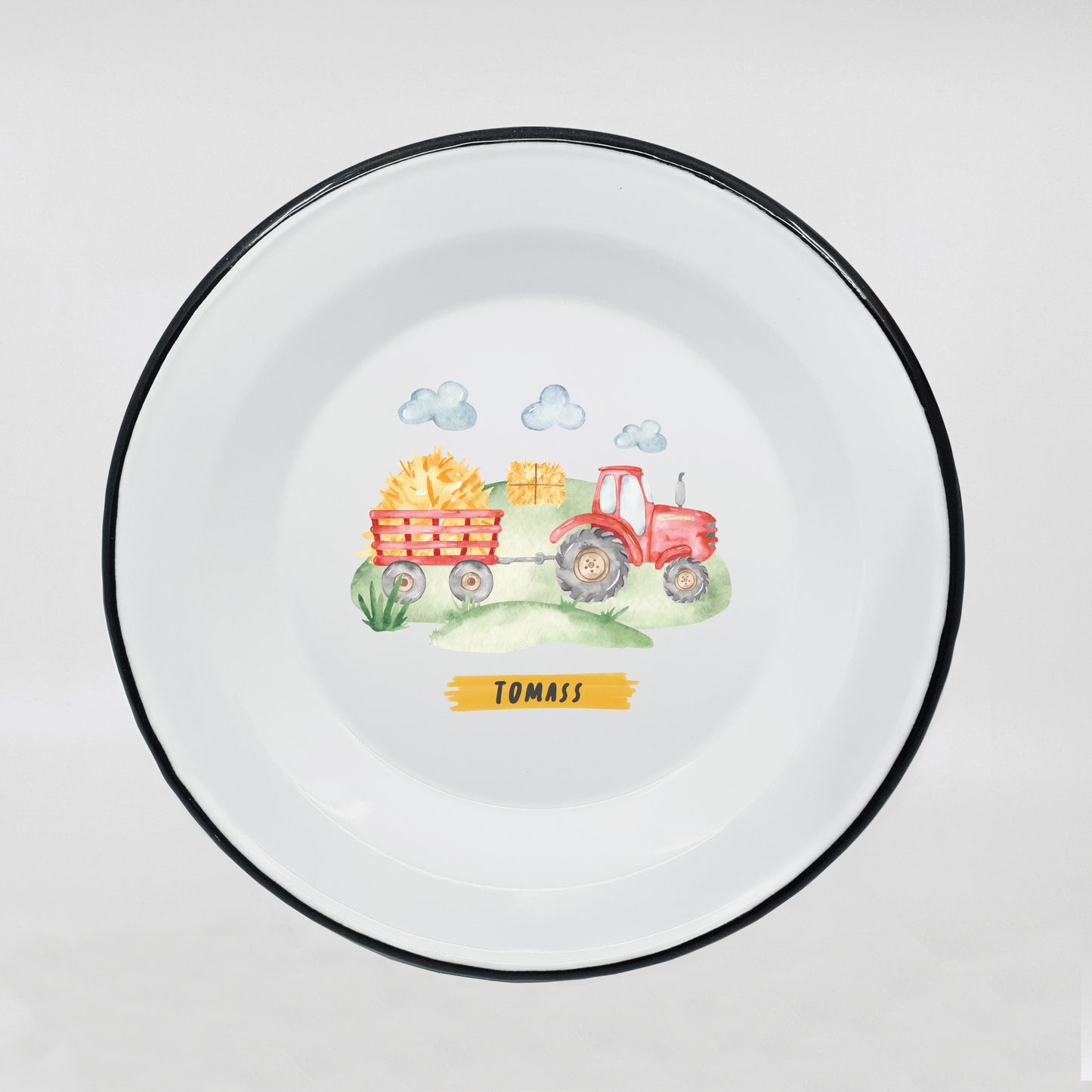 Kids enamel dinner plate with tractor print 600ml/20.28oz