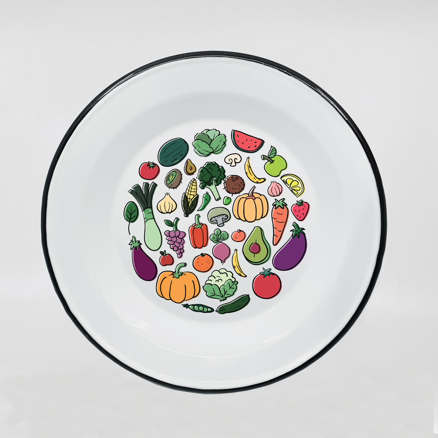 Kids enamel dinner plate with vegetables print 600ml/20.28oz